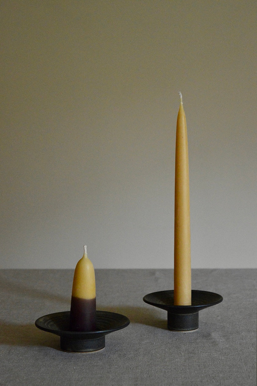 Elevated candle holder, thrown in a flecked stoneware and glazed in Charcoal flecked glaze. Hand made in small batches.