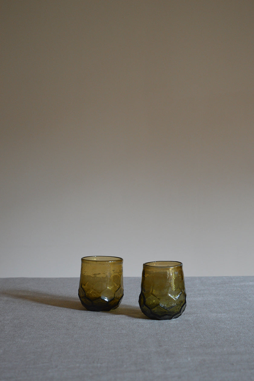 The Verre Melissa Olive is a beautifully crafted drinking glass that merges elegance with functionality. The design of the Verre Melissa Olive is inspired by the Greek goddess of bees and features a striking honeycomb pattern beveled at the base.