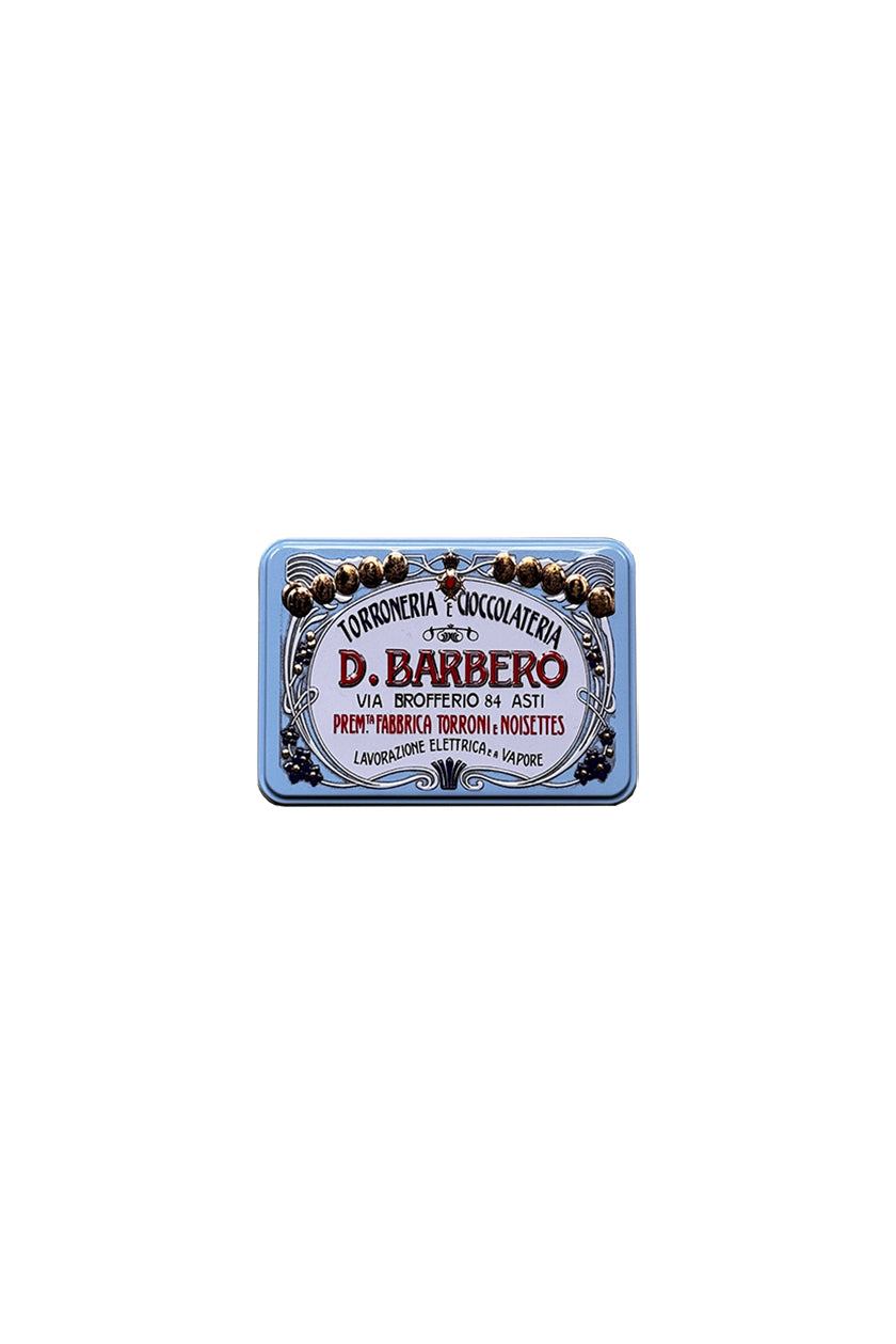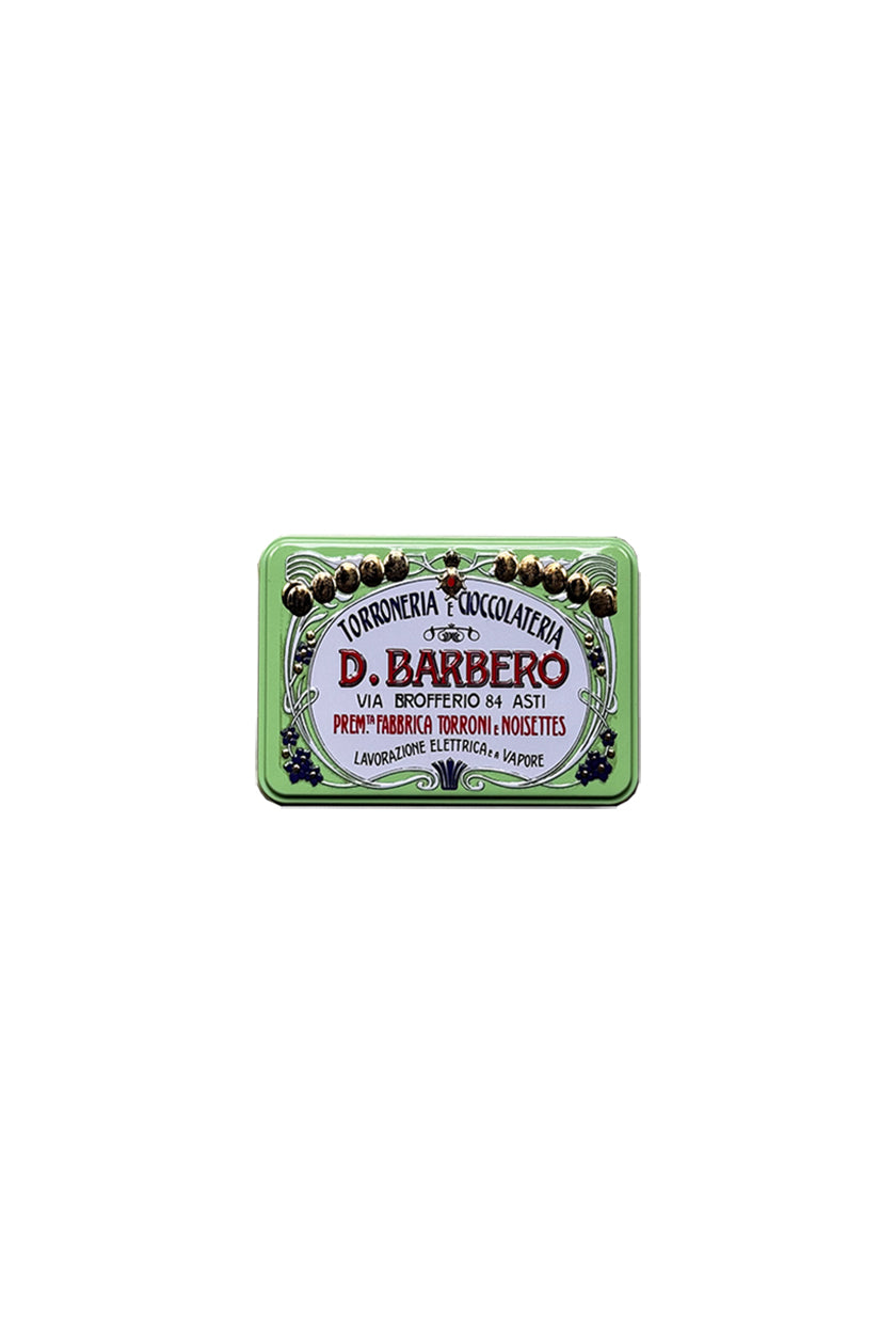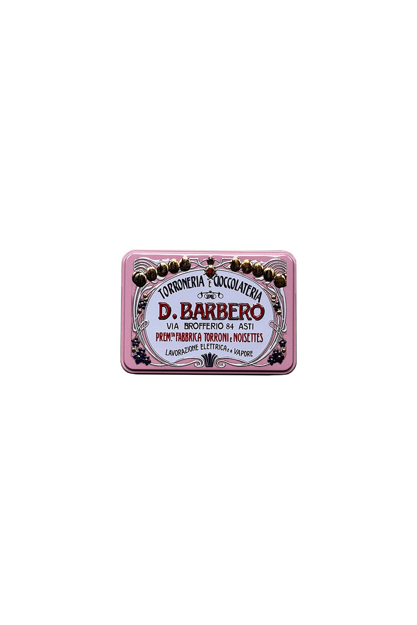 Finely decorated vintage-inspired tins filled with individually wrapped torroncini, chocolates and truffles. The pink tin contains crumbly white nougat (torroncini) made with hazelnuts while delicious crumbly covered chocolate nougat is housed in the green; the yellow presents a mix of nocciolini (pralines filled with hazelnuts, beori (pralines with cherry liqueur) and limoncelli (pralines with lemoncello cream) while the cream features chocolate, hazelnut and nougat truffles and the blue, chocolate-covered hazelnut pralines.