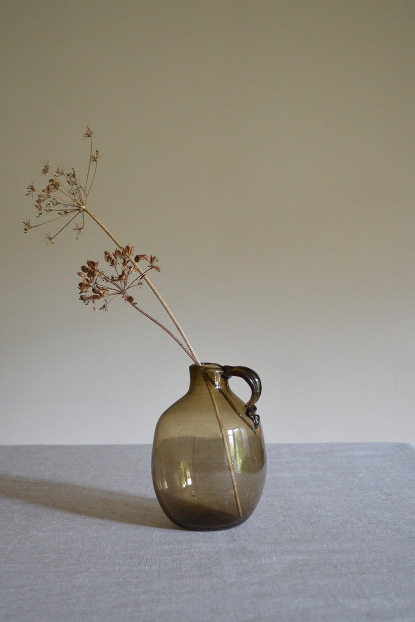 Evoking the charm of antique table settings, this small mouth-blown glass Carafon Fumé is designed to serve wine with elegance, or on rare occasions, a fine liqueur. With its delicate curves and subtly tinted glass, it recalls the vessels once used to hold a measured pour of spirits — much like the carafons mentioned in classic literature.